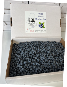 Blueberries for sale! Our blueberry harvest starts in late July! We will have them available fresh immediately after harvest, and then frozen in 5 and 10 lb boxes! Our freezer boxes are coated with high quality food grade wax which keeps the berries from sticking, and allows you to scoop them out as needed for any recipe! Perfect for baking a blueberry pie any time of year, or the perfect blueberry pancakes on Christmas morning. Please contact us if you are interested in either fresh or frozen wild maine blueberries!